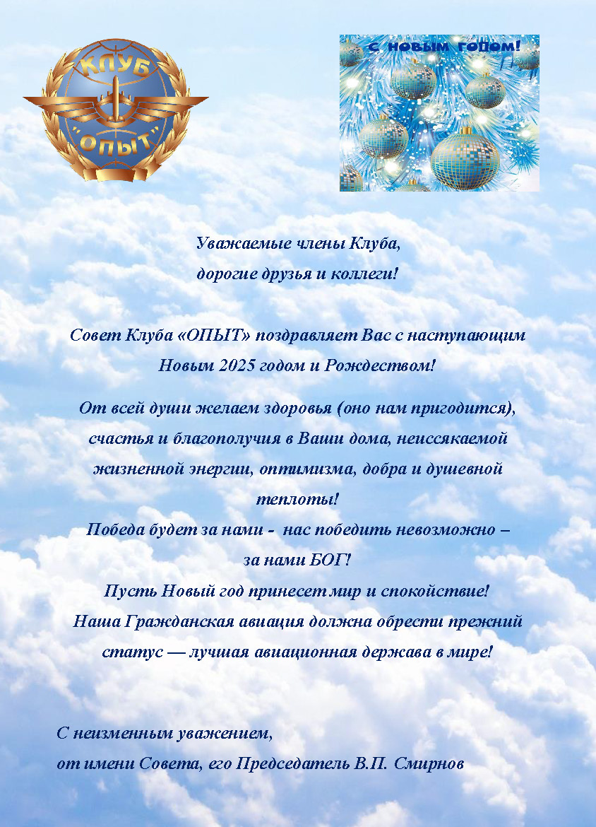Поздравление участникам Клуба «ОПЫТ» с наступающим 2025 годом и Рождеством!