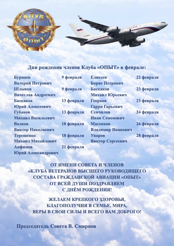 Дни рождения членов Клуба «ОПЫТ» в феврале