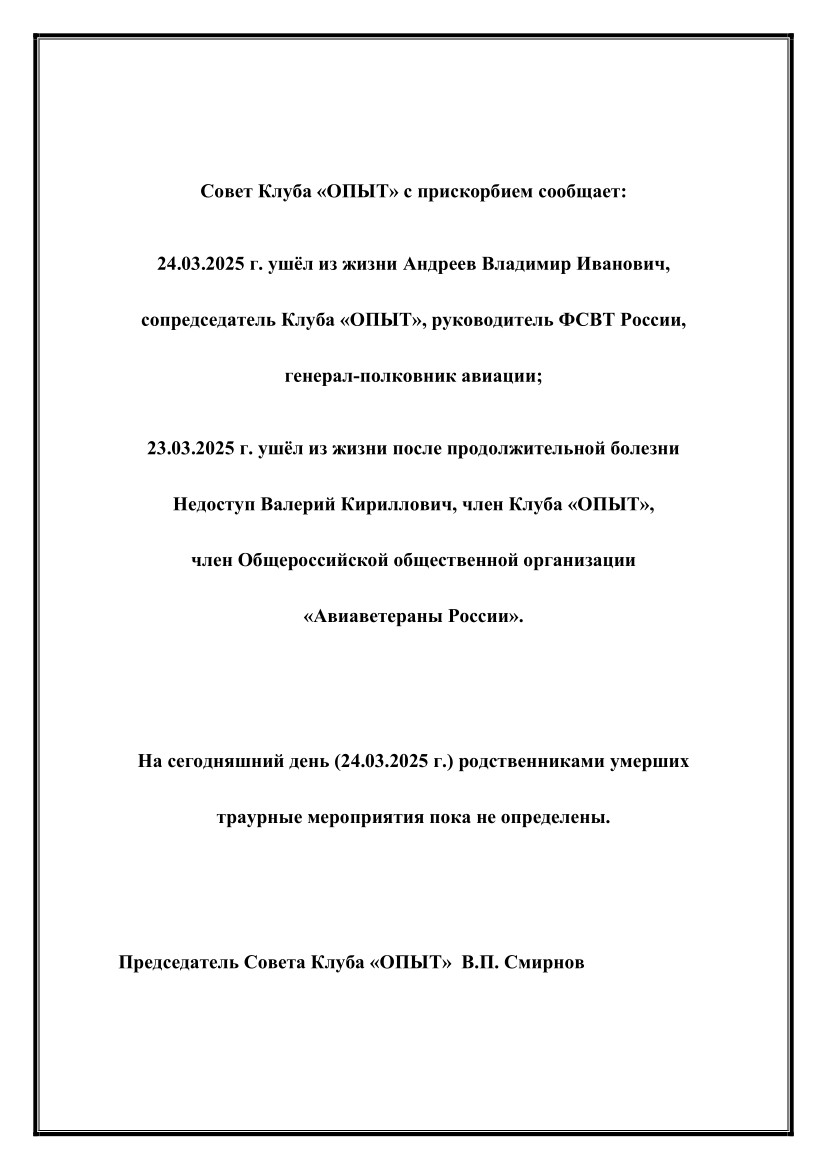 Срочная информация для членов Клуба ОПЫТ
