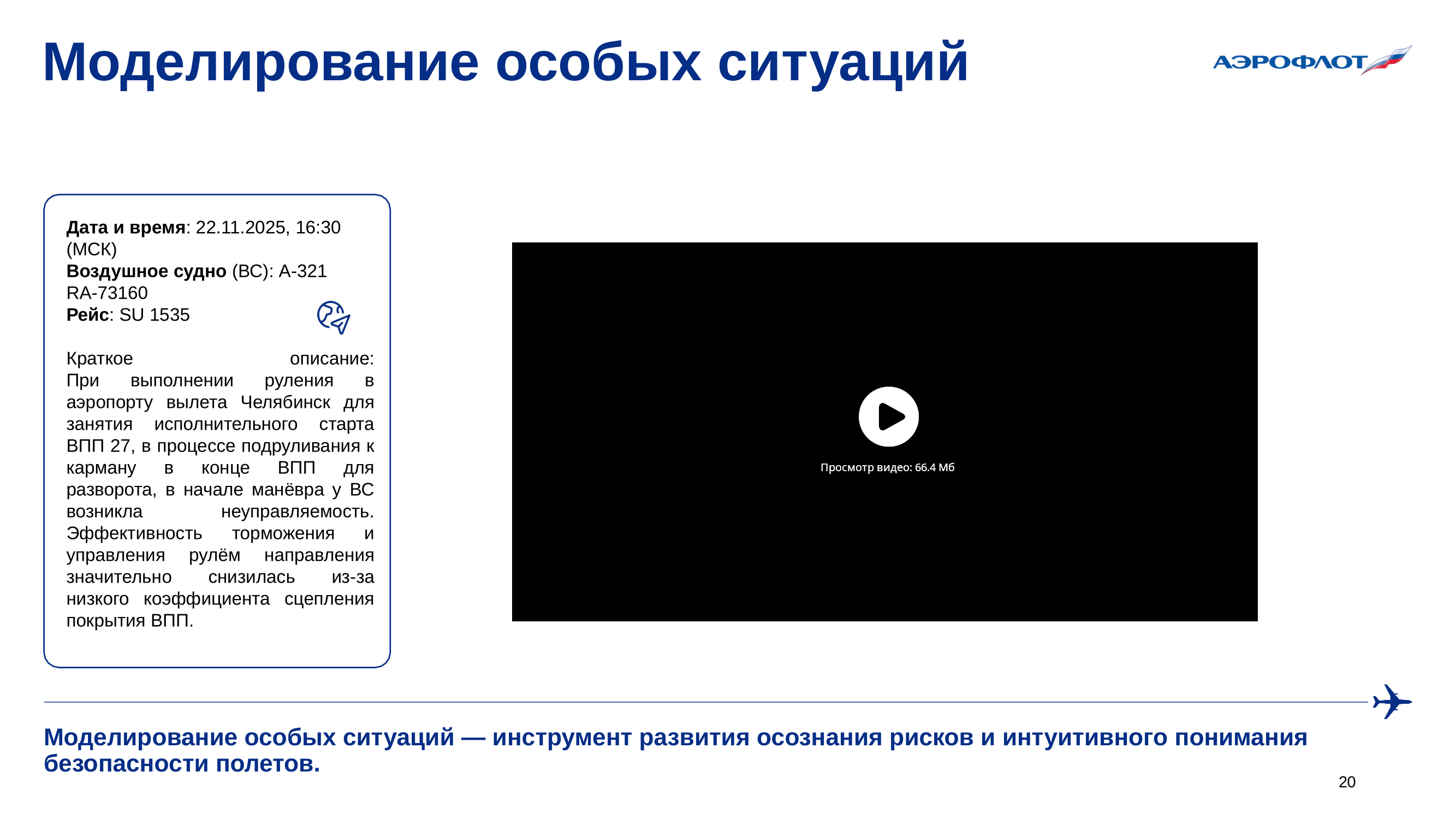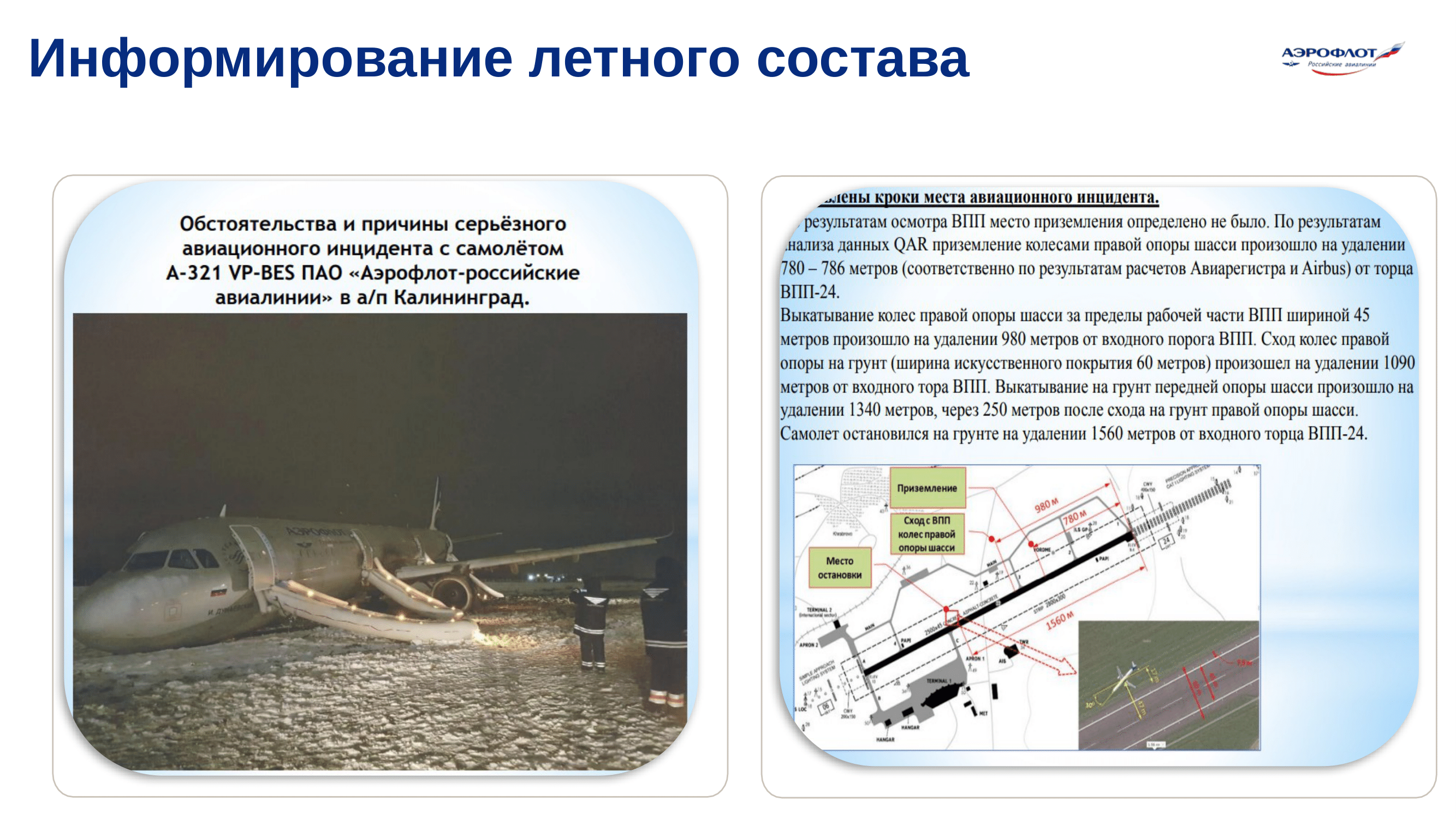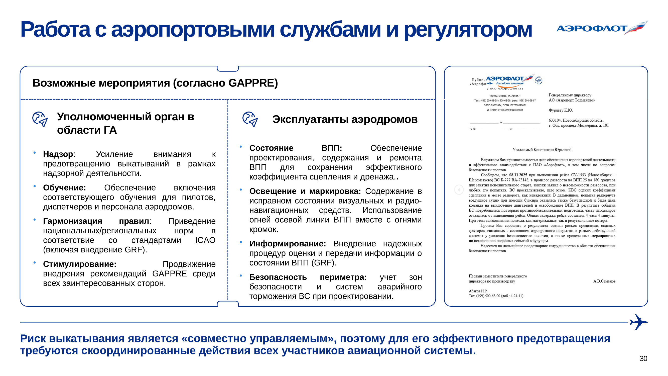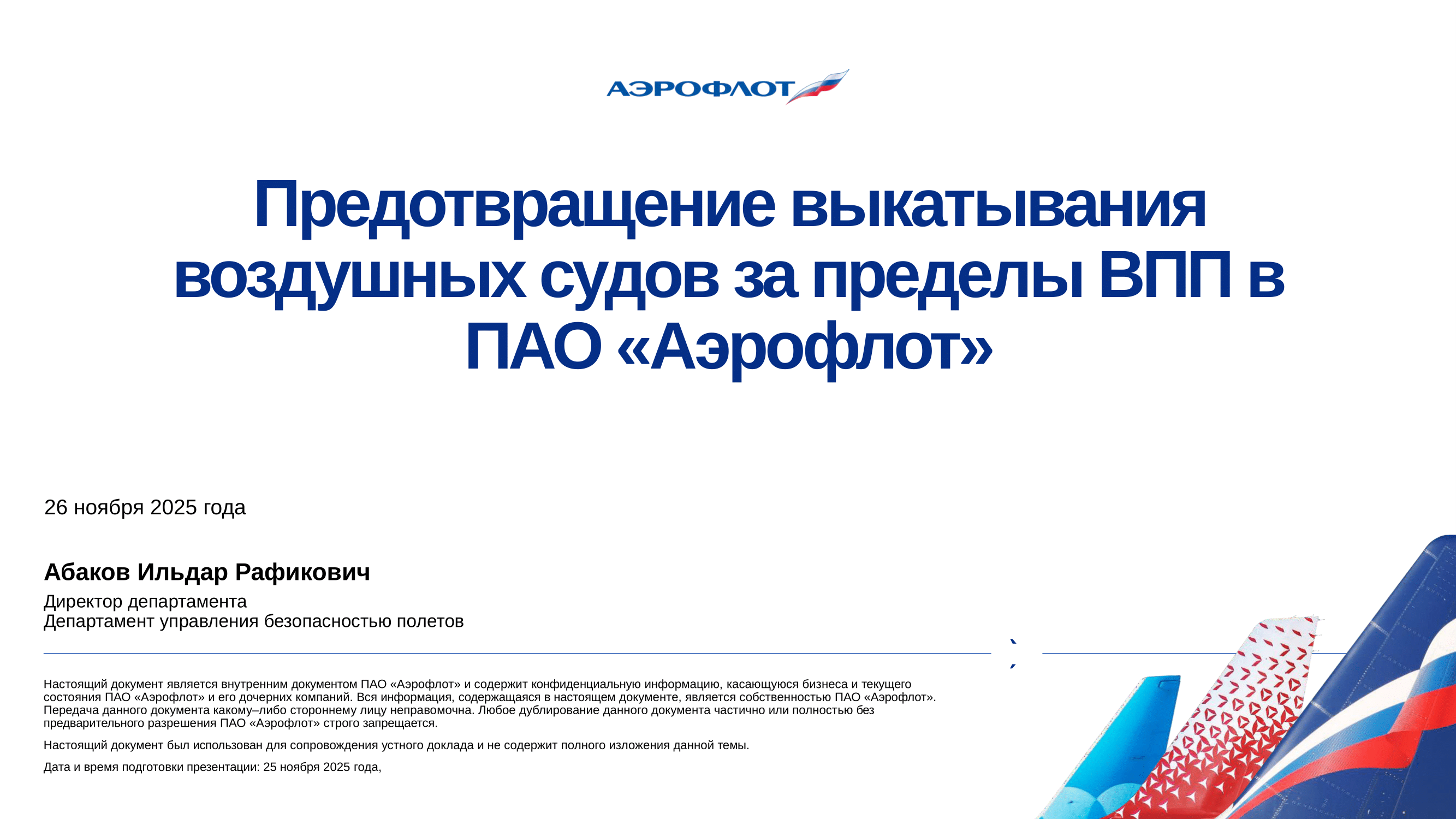 Предотвращение выкатывания воздушных судов за пределы ВПП в ПАО «Аэрофлот»