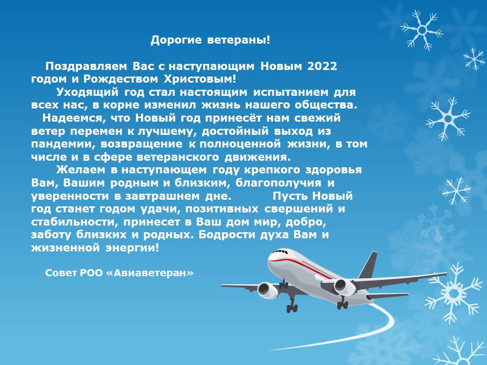 Поздравление Совета РОО «Авиаветеран» с Новым годом и Рождеством