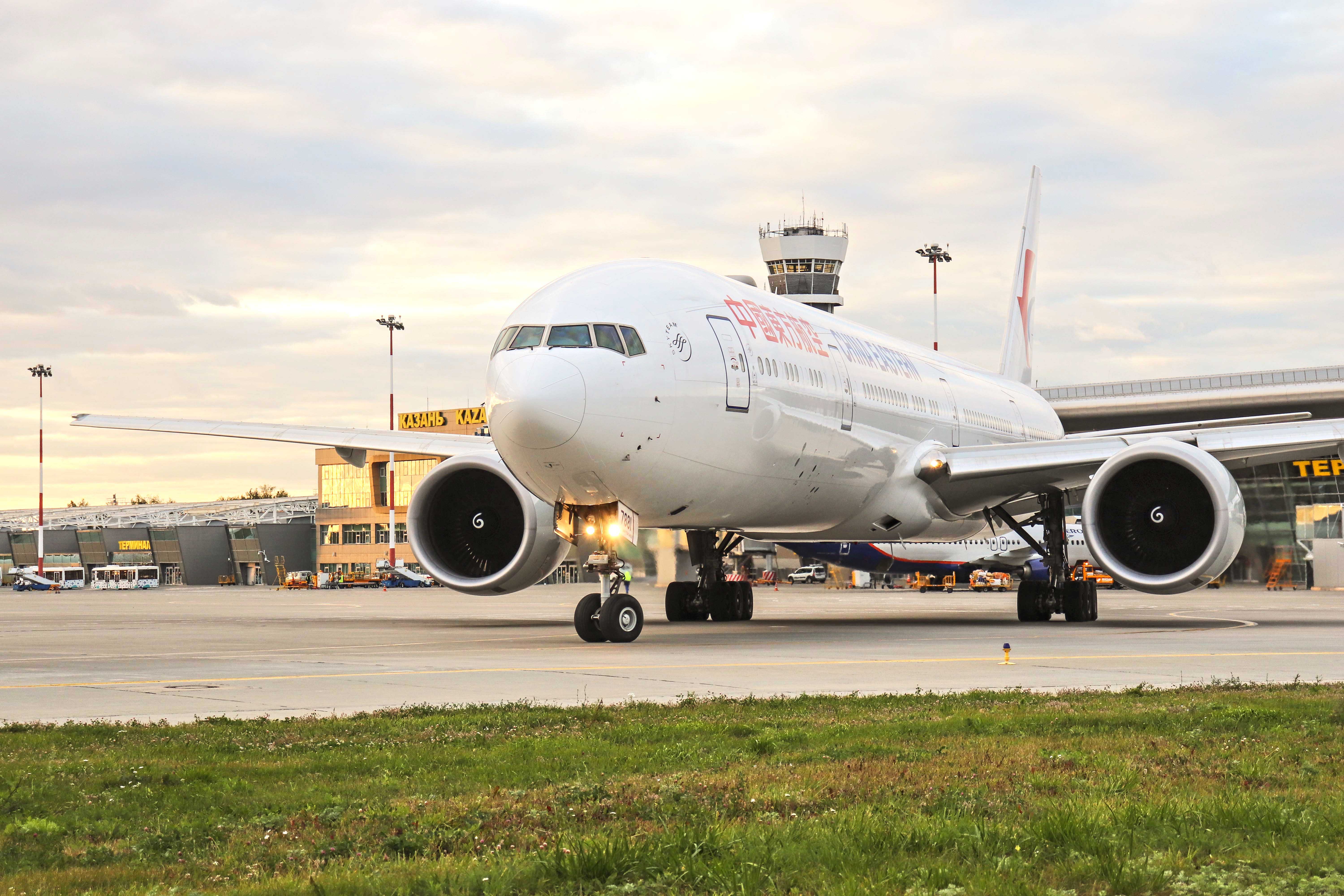 У аэропорта Казани уже есть опыт приема ВС перевозчика China Eastern Airlines. На фото: самолет Boeing 777-300ER китайской авиакомпании привез делегацию на World Skills 2019