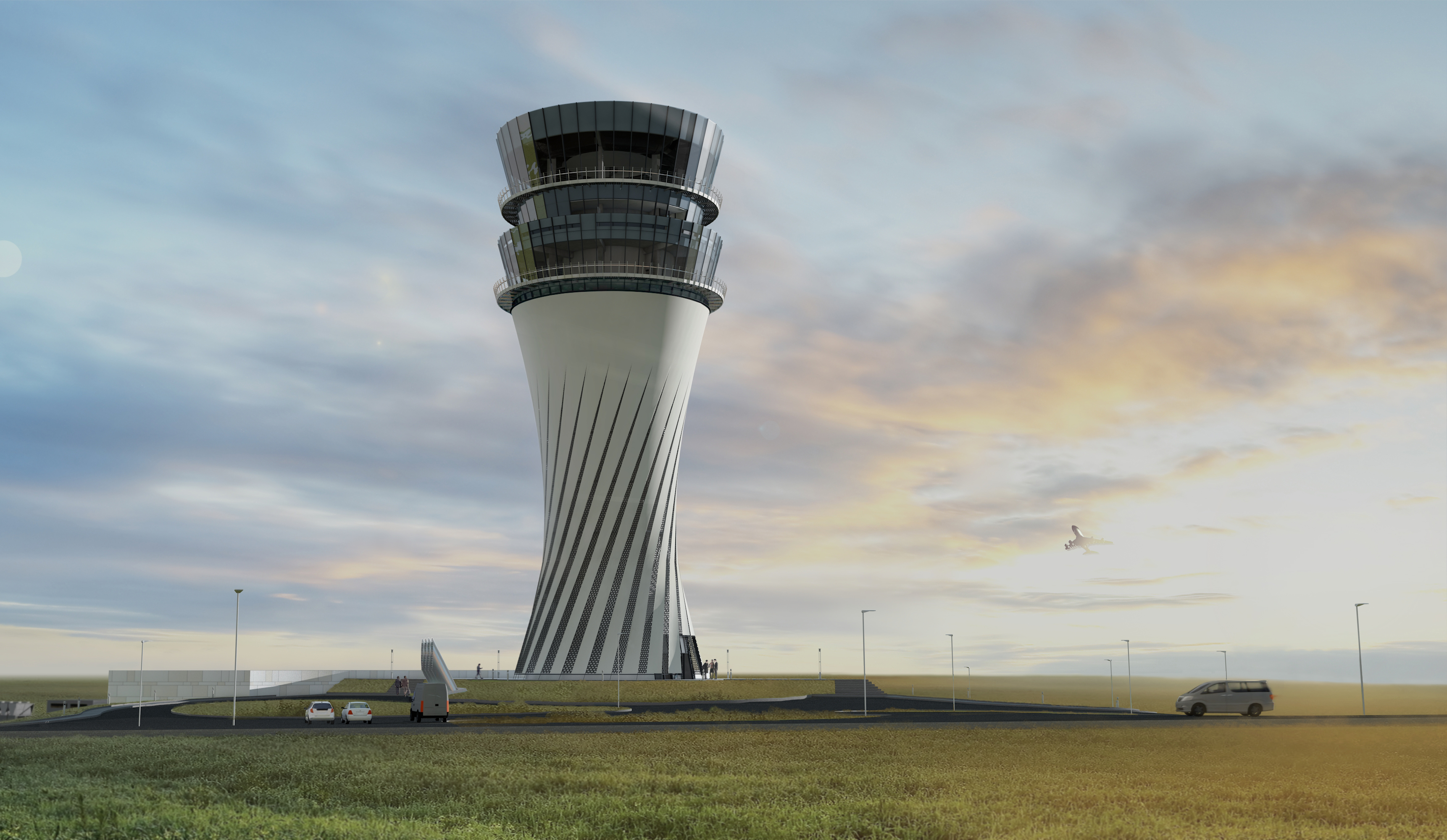 Строящийся по проекту подведомственного Росавиации института «Аэропроект» КДП размещен между двумя взлетно-посадочными полосами симферопольского аэропорта, напротив пассажирского терминала. Это будет специализированное многоэтажное здание башенного типа, высотой 58 метров. Конструктивные решения позволяют разместить диспетчерский зал в полностью «прозрачном» объеме, обеспечивая наилучшие условия для обзора летного поля. Если здание аэровокзального комплекса ассоциируется с морской волной, то башня КДП – это маяк в море.
