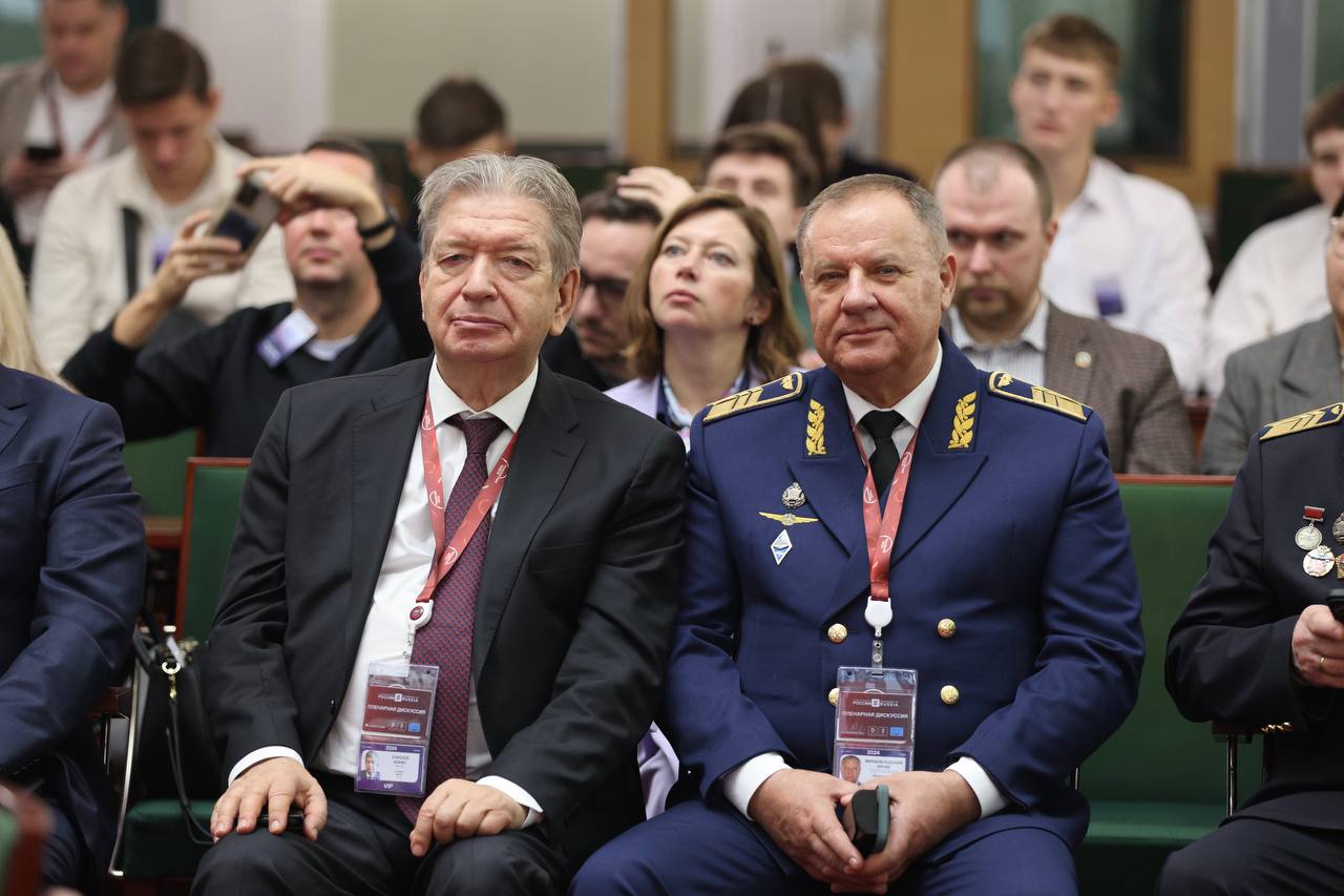 В мероприятии также приняли участие руководители подведомственных Росавиации вузов: ректор МГТУ ГА Борис Елисеев (слева) и ректор СПбГУ ГА Юрий Михальчевский (справа)