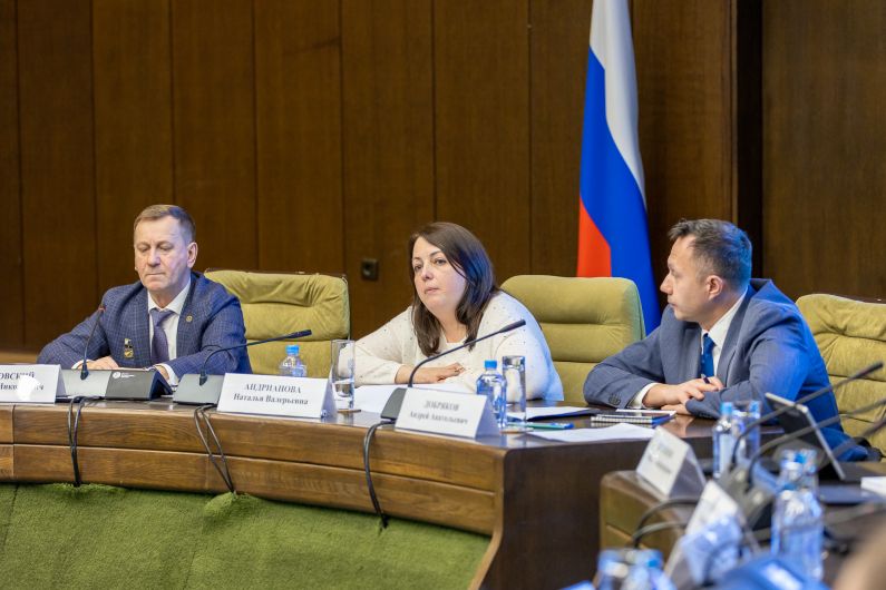 На фото (слева – направо): председатель Общественного совета при Росавиации Николай Ивановский, заместители руководителя Росавиации Наталья Андрианова и Андрей Добряков