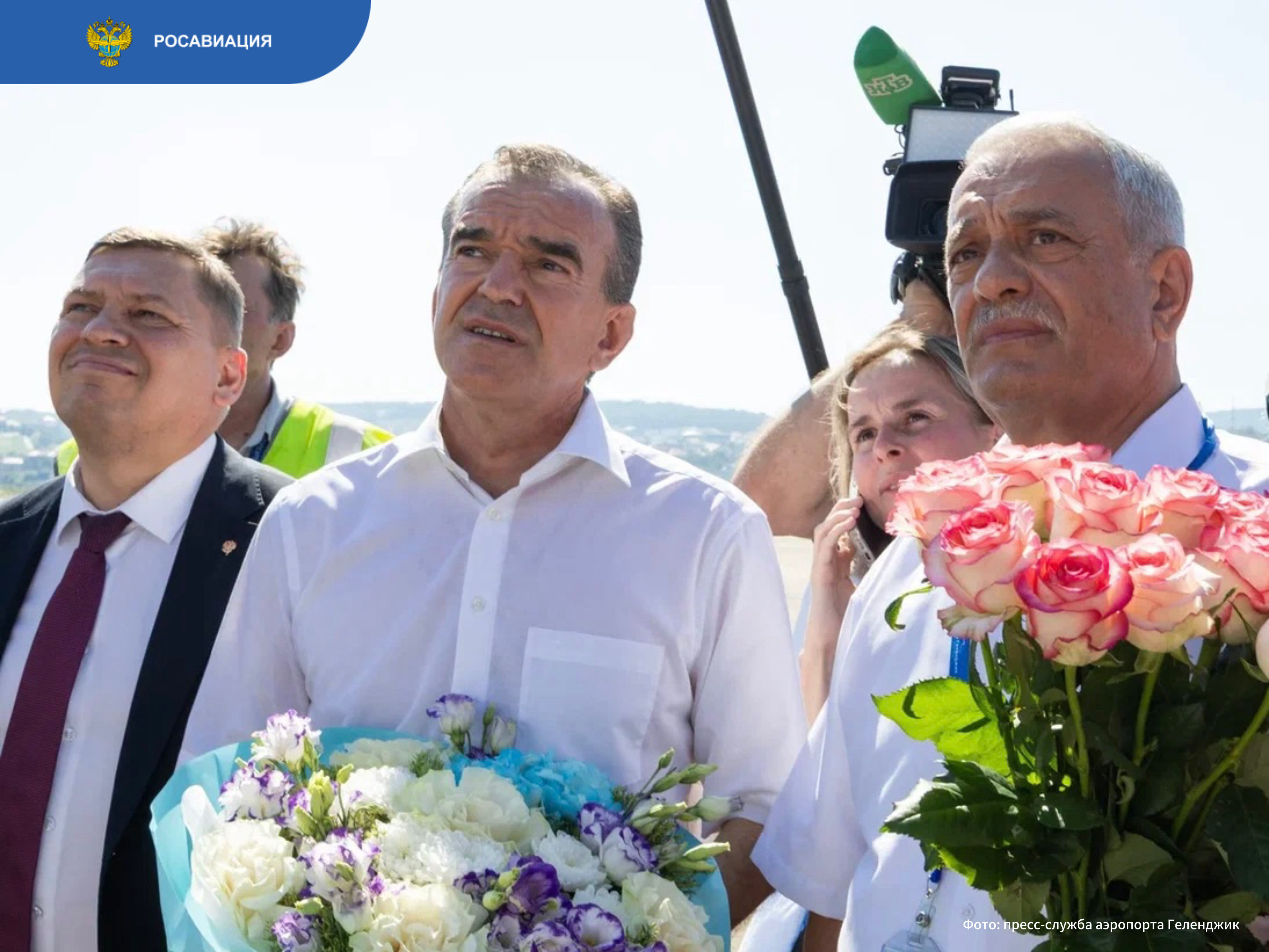 Сегодня, 18 июля, в аэропорт Геленджик (код ИКАО: URKG) прибыл рейс авиакомпании «Аэрофлот» из Москвы. Он стал первым после возобновления работы воздушной гавани — с 2022 года полеты были ограничены по соображениям безопасности. Пассажиров прибывшего рейса, среди которых был замглавы Росавиации Сергей Страмоус,  возле трапа встретили губернатор Краснодарского края Вениамин Кондратьев и гендиректор аэропорта Иван Таранченко.