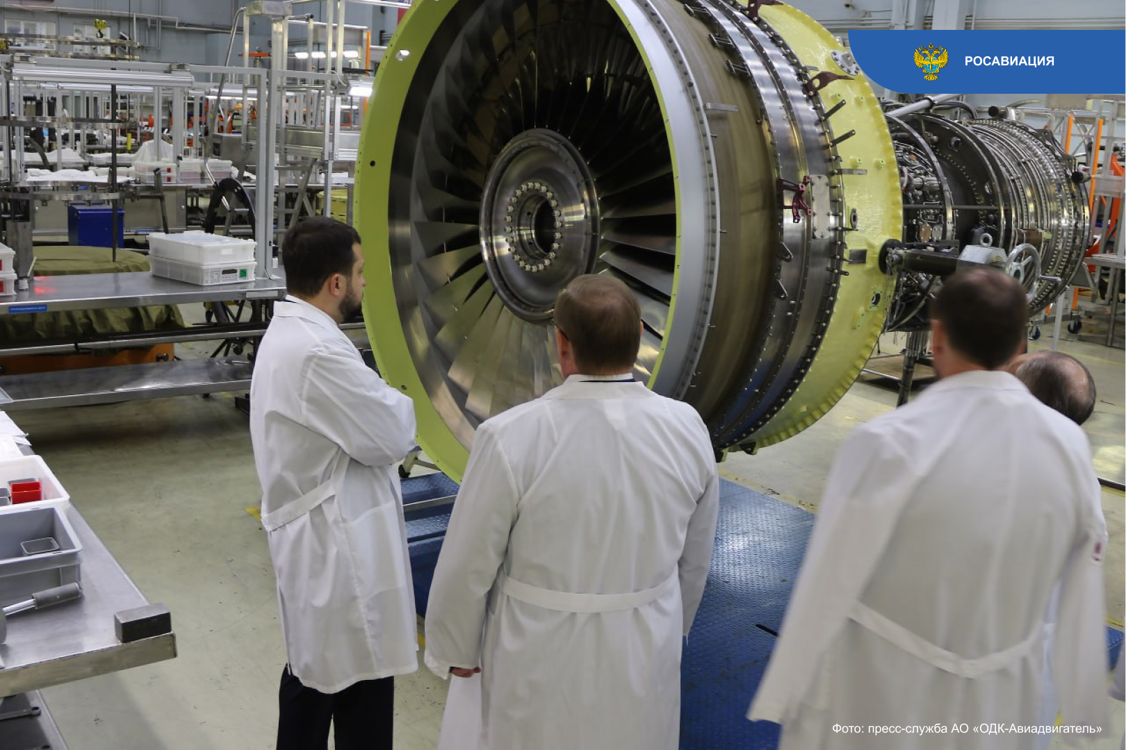 Двигатель-демонстратор технологий ПД-35 осмотрели во время рабочей поездки в Пермский край министр транспорта РФ Андрей Никитин, руководитель Росавиации Дмитрий Ядров и глава региона Дмитрий Махонин.