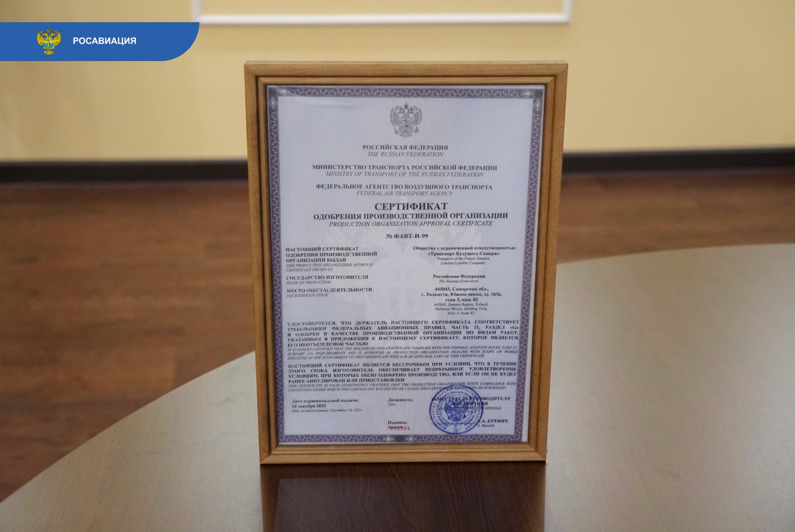 1) ООО «Транспорт Будущего Самара»второму по счету изготовителю гражданских беспилотных авиационных систем в России.