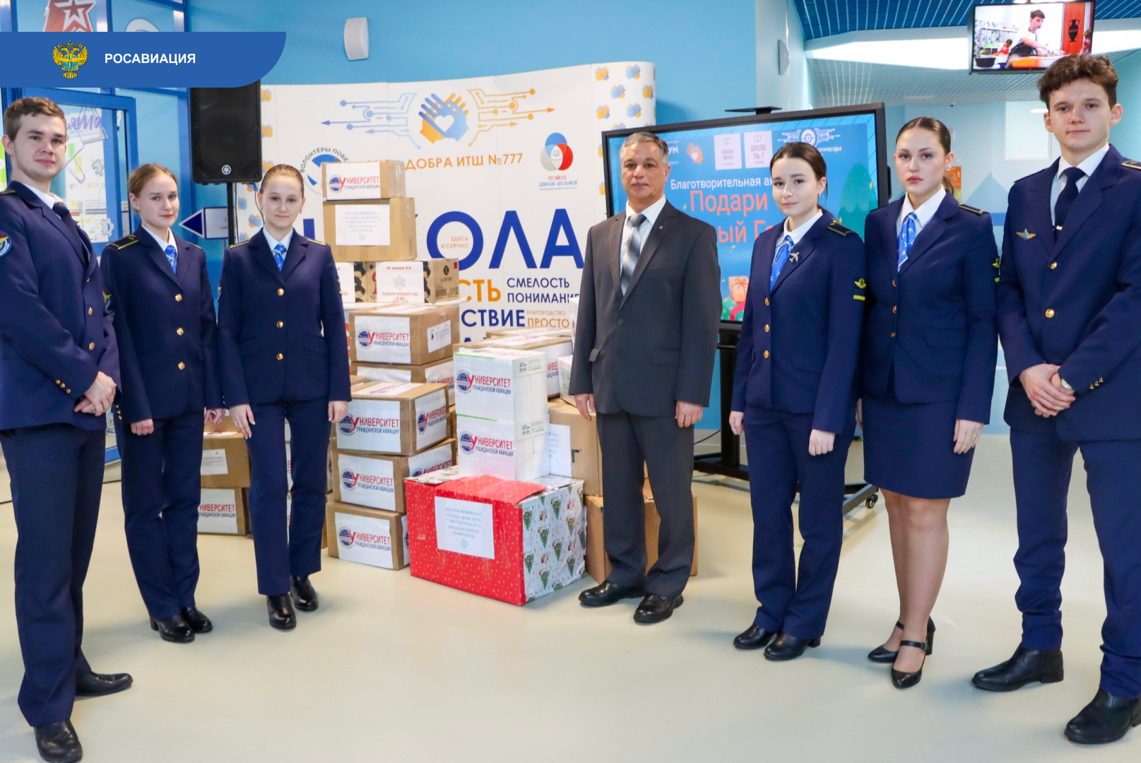 В предпраздничный месяц сотрудники Росавиации и подведомственных учреждений дополнили традиционные посылки с гуманитарной помощью новогодними подарками и поздравительными письмами для участников СВО. Поддержку в канун праздников также оказали семьям защитников и мирным жителям, проживающим в исторических регионах.