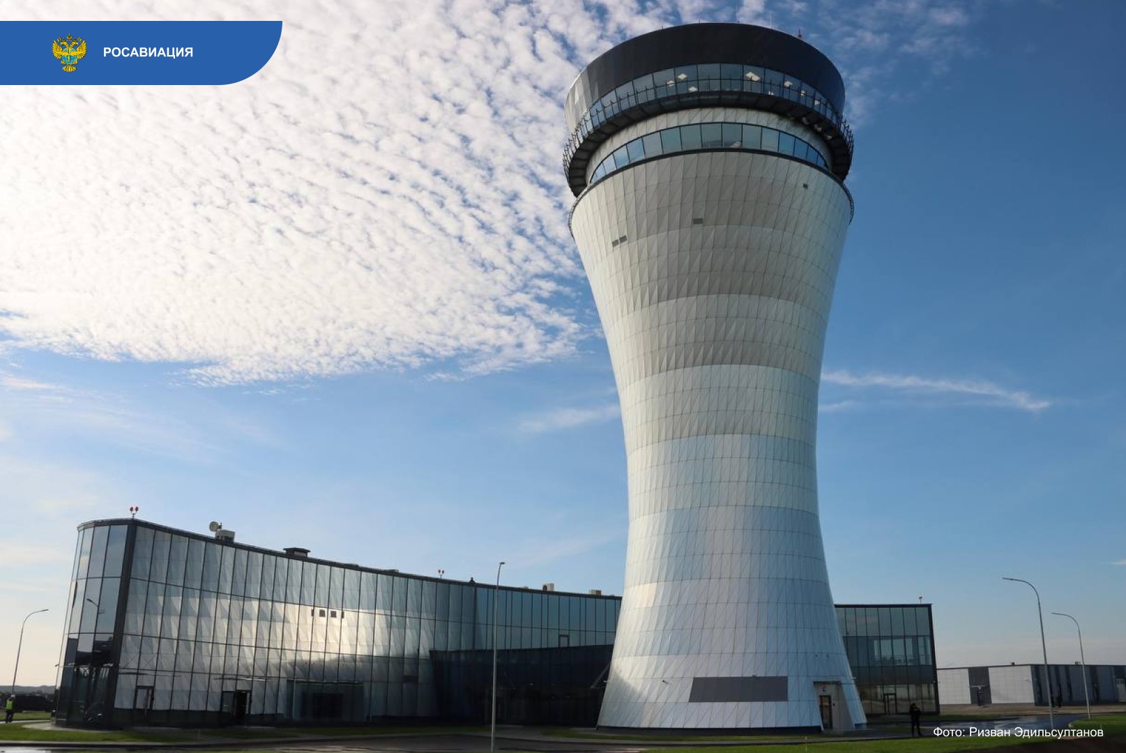 Комплекс КДП включает два основных элемента: двухэтажное административное здание (силуэт повторяет форму полумесяца) и 52-метровую диспетчерскую вышку в 10 этажей, выполненную в виде гиперболоида (фигура вращения). Оборудование комплекса будет функционировать полностью на российском программном обеспечении.