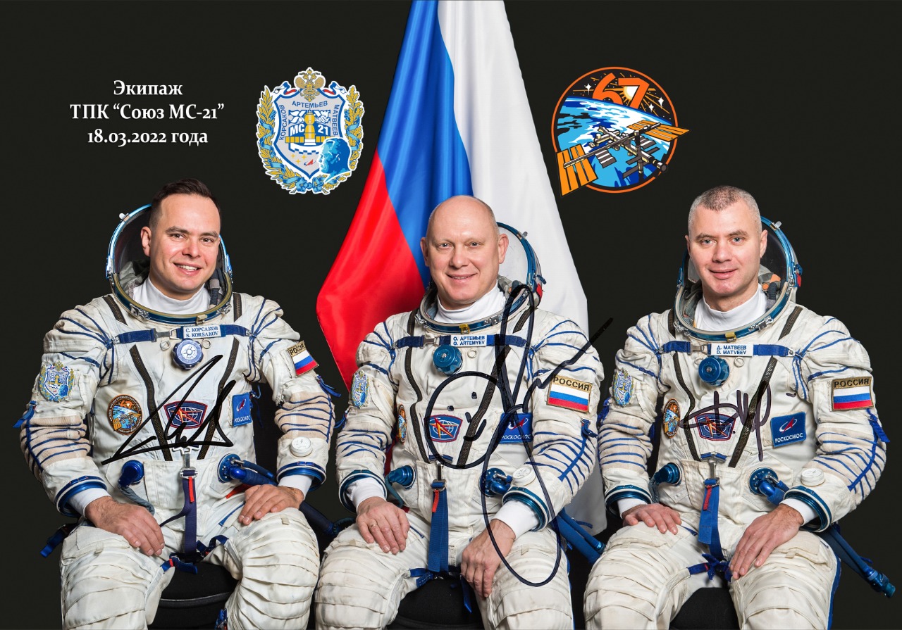 "Союз МС-21" носит имя легендарного конструктора Сергей Павловича Королева, в экипаже три российских космонавта: Артемьев Олег (командир),  Матвеев Денис и Корсаков Сергей.