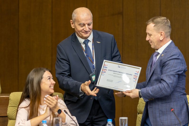 Председатель Общественного совета при Росавиации Николай Ивановский вручил благодарственное письмо Мирославу Бойчуку (в центре)