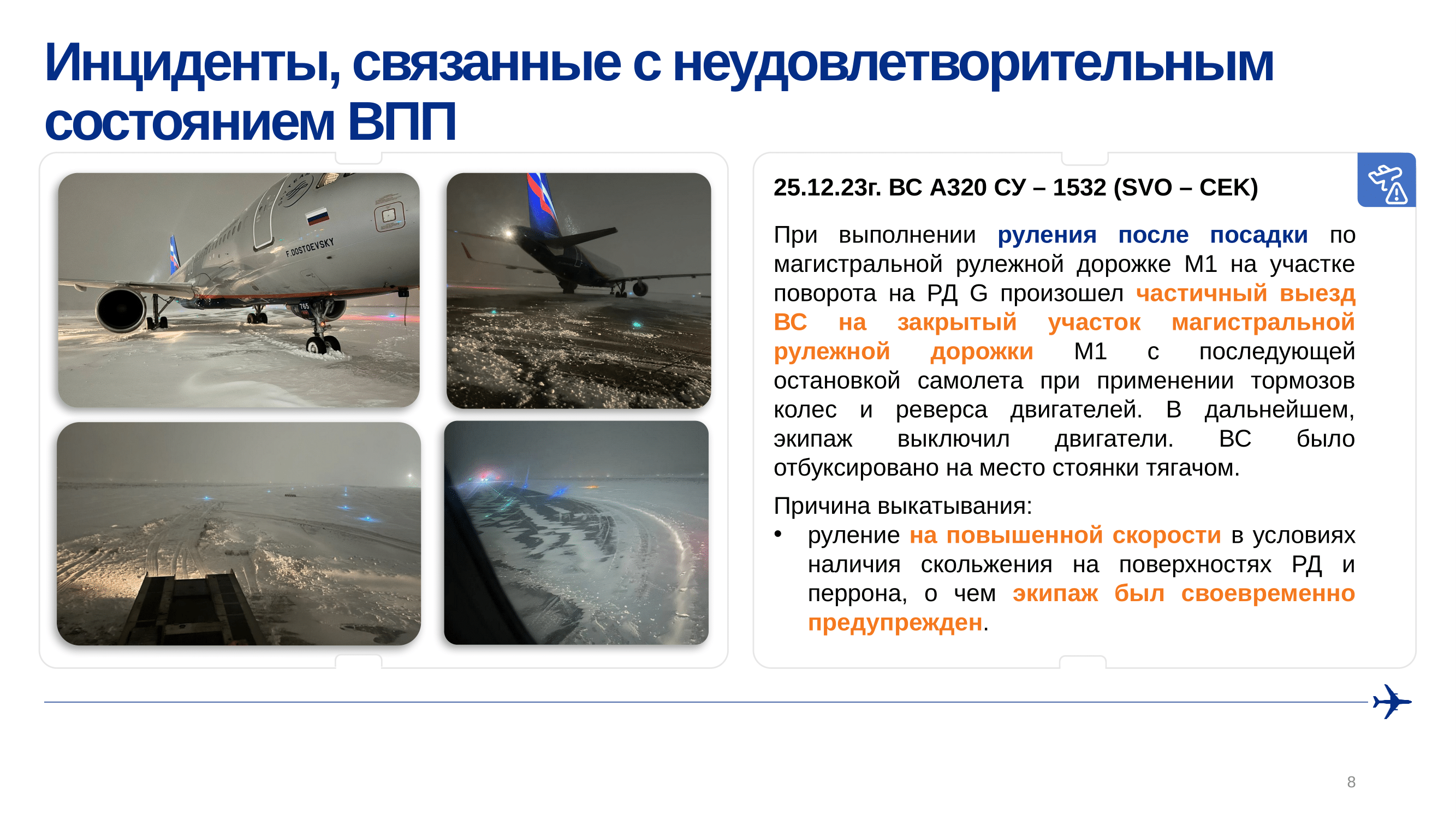 Предотвращение выкатывания воздушных судов за пределы ВПП в ПАО «Аэрофлот»