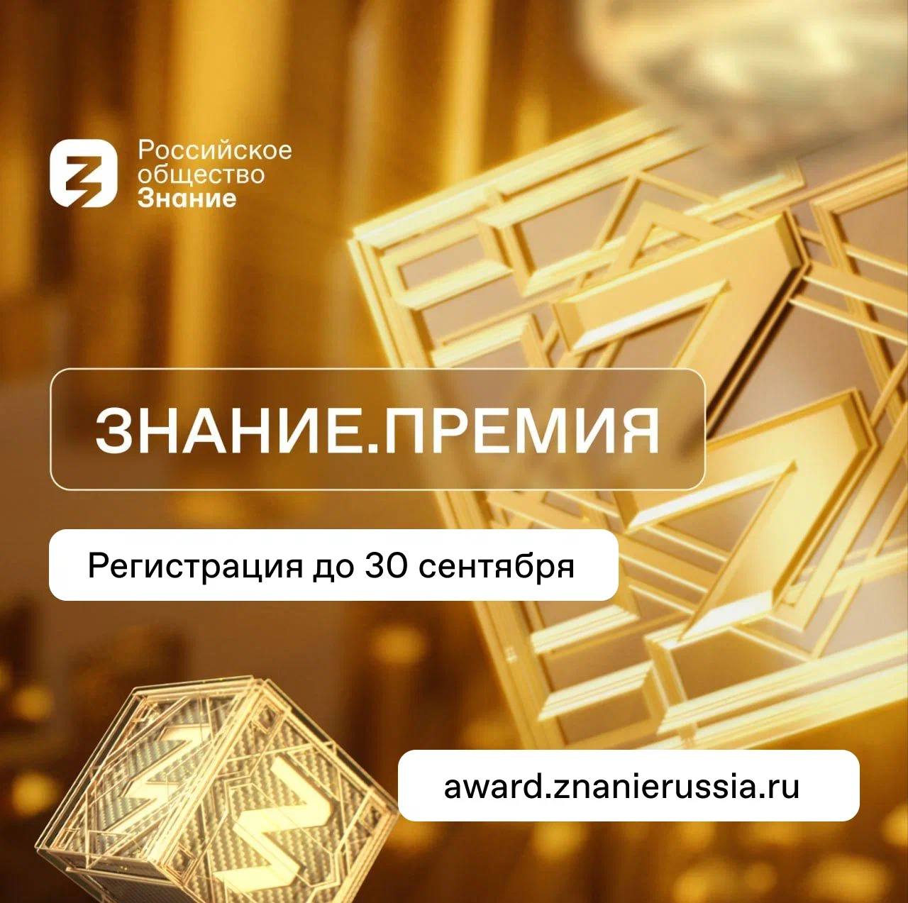 Заявку и информацию о просветительской деятельности необходимо подать до 30 сентября 2024 года. Подать заявку на участие — award.znanierussia.ru