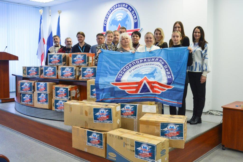 На фото: подарки бойцам от сотрудников «Крымаэронавигации»