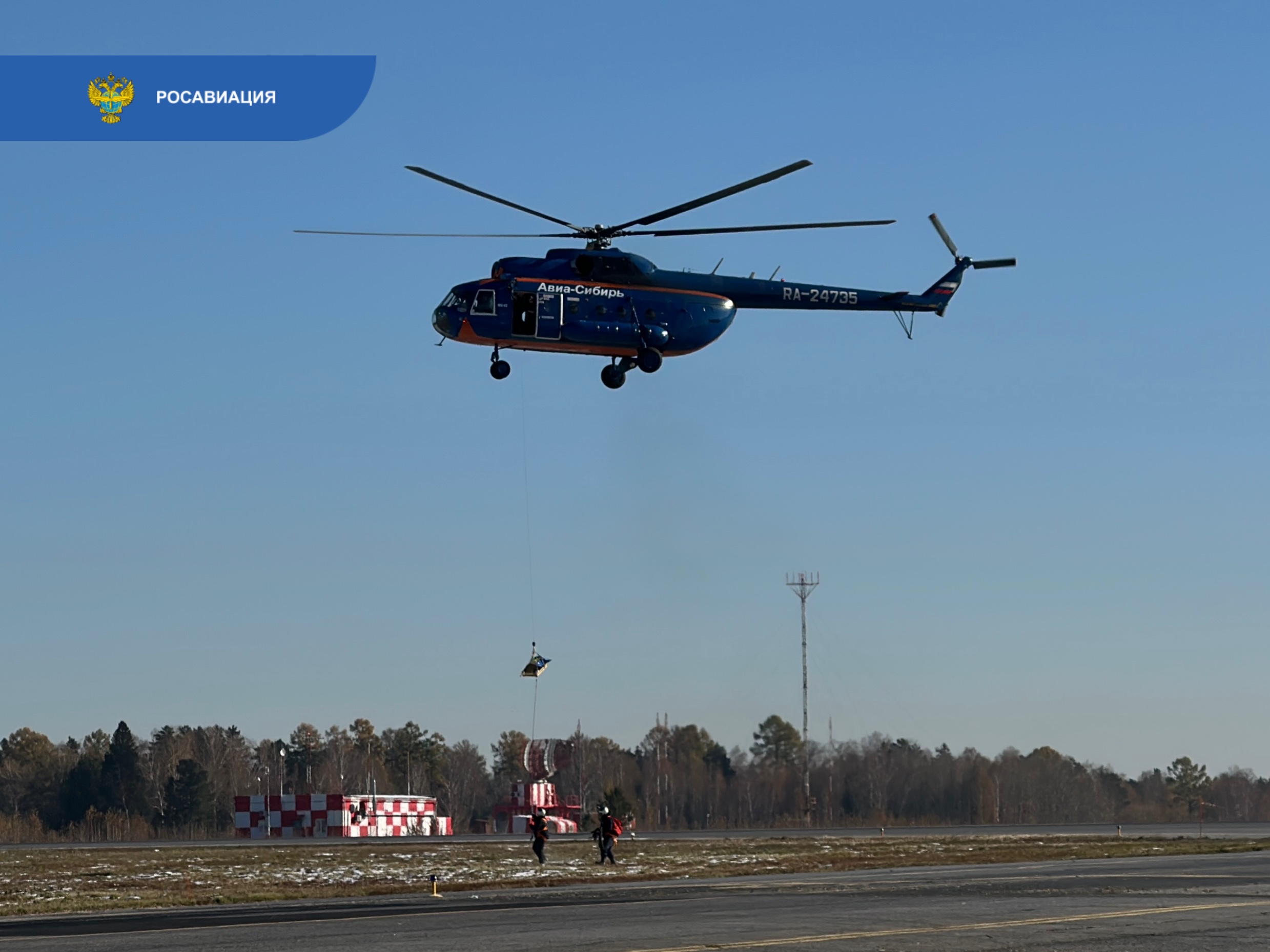 В тренировке участвовали спасатели Колпашевской РПСБ на поисково-спасательном вертолете Ми-8 авиакомпании «Авиа-Сибирь»
