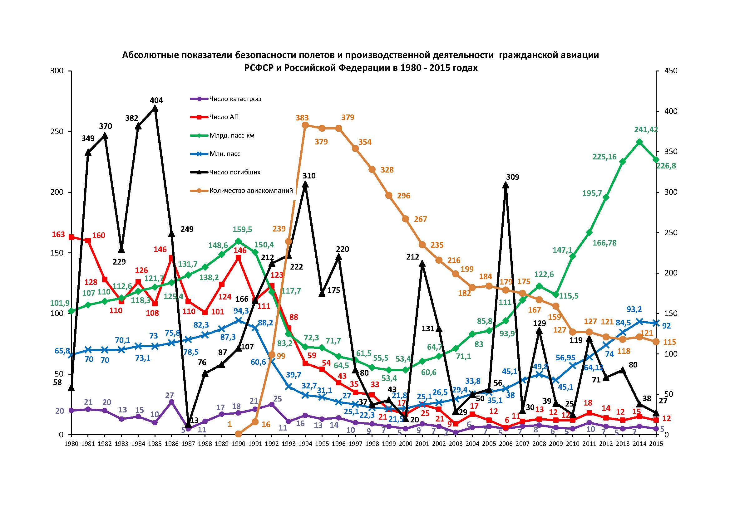 Смешивать эти показатели, суммируя все авиапроисшествия, принципиально неправильно.