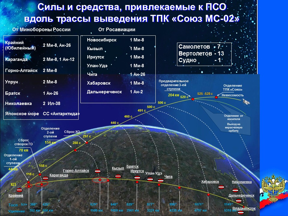 Росавиация сосредоточила поисково-спасательные силы для обеспечения запуска транспортно-пилотируемого корабля «Союз МС-02»