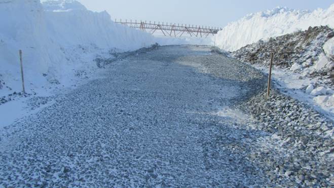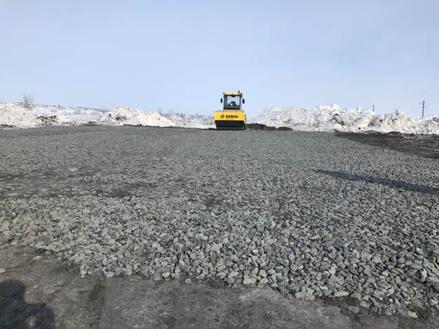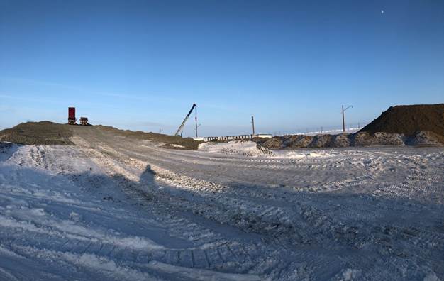 По состоянию на середину апреля 2018 года на объекте выполняются работы по подготовке строительной площадки к строительному сезону, в том числе развертывание производственной базы, монтаж модулей вахтового городка, разработка рабочей документации, заготовка строительных материалов, доставка техники и др.