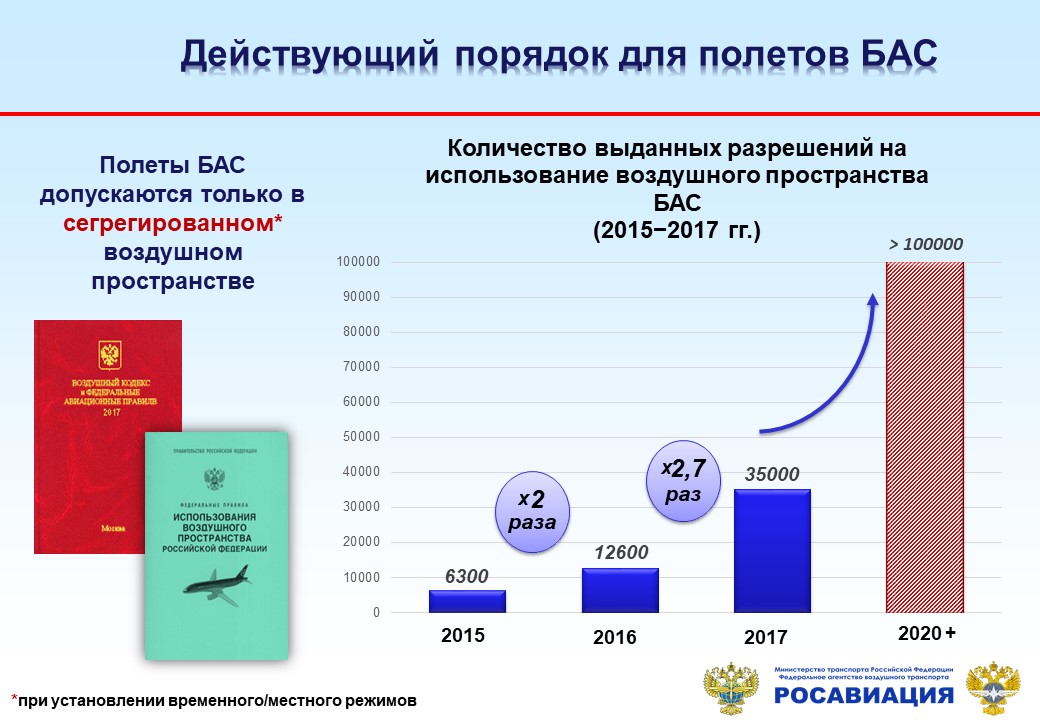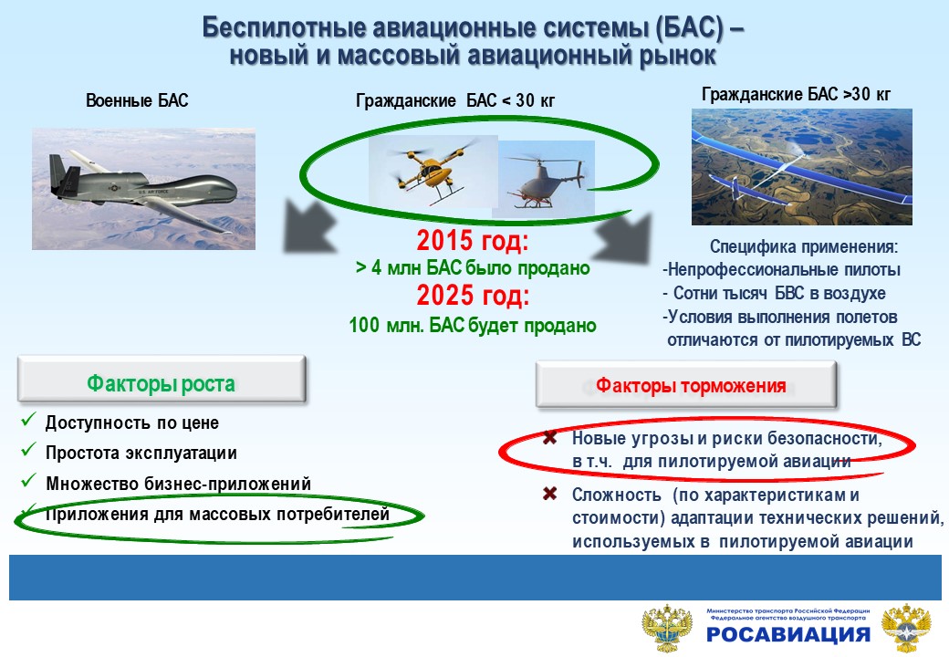 Немного статистики: за 2015 год было продано более 4 млн БАС. К 2025 году ожидается увеличение продаж до 100 млн. Более 2 млн малых БАС будет эксплуатироваться в России через несколько лет.