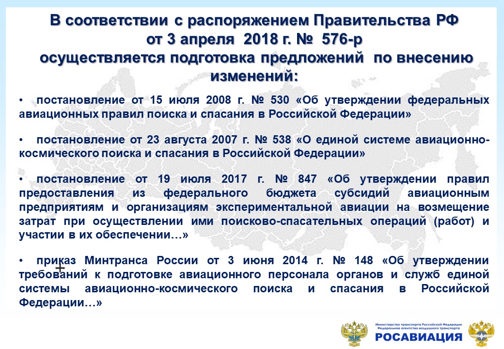 Кроме того, в целях совершенствования законодательства и устранения административных барьеров распоряжением Правительства Российской Федерации от 03.04.2018 № 576-р утверждена соответствующая «дорожная карта» Национальной технологической инициативы по направлению «Аэронет».