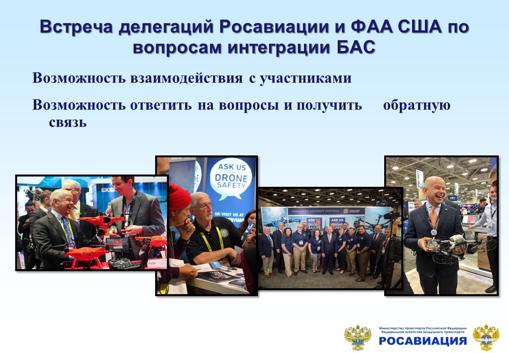В ходе встречи представители ФАА поделились опытом разработки Концепции управления движением беспилотных воздушных систем (UTM) .