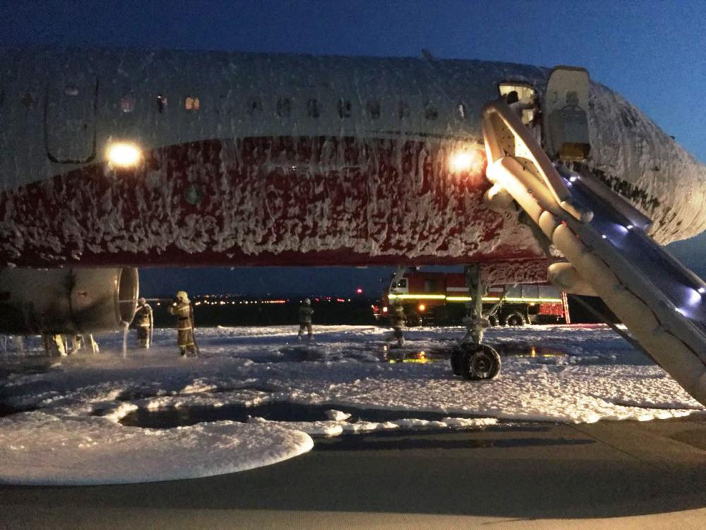 После приземления Ту-204 пожарные и аварийно-спасательные расчеты аэропорта и Росавиации провели экстренное тушение левого двигателя и эвакуировали пассажиров с правого борта самолета с применением аварийных надувных трапов.
