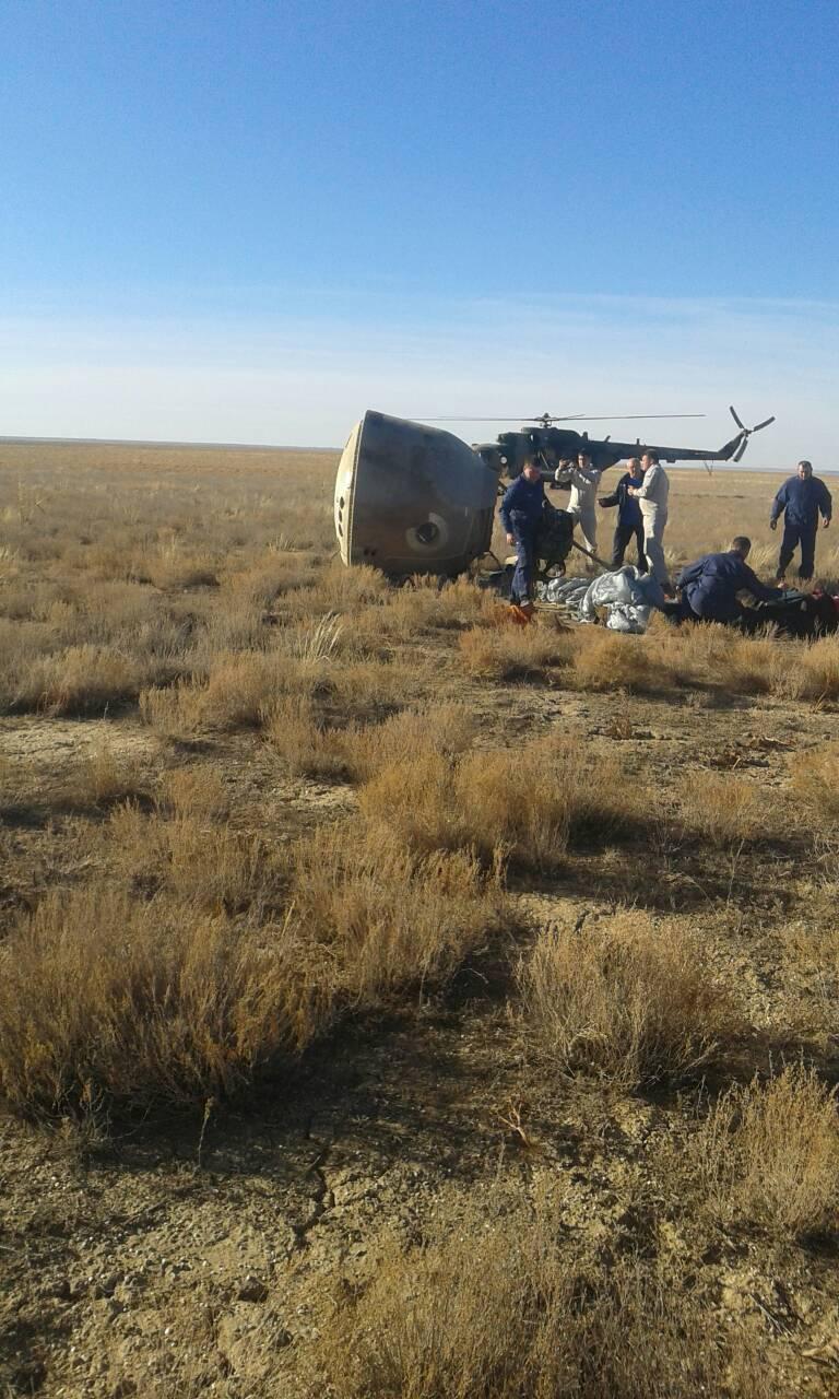 На 122 секунде после запуска пилотируемого космического корабля Союз МС-10 произошла авария, спасательная система обеспечила отстрел спускаемого аппарата. Приземление произошло примерно в 400 км от места старта, в 30 км от г. Жезказгана (Карагандинская область, Республика Казахстан). Спасательные вертолеты и самолеты, а также наземная поисково-спасательная колонна взлетели и выдвинулись из Жезказгана, Байконура, Караганды на поиски спускаемого аппарата по аварийной тревоге.