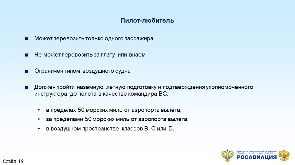 Для того, чтобы частный пилот смог начать перевозки пассажиров за плату, ему необходимо получить: