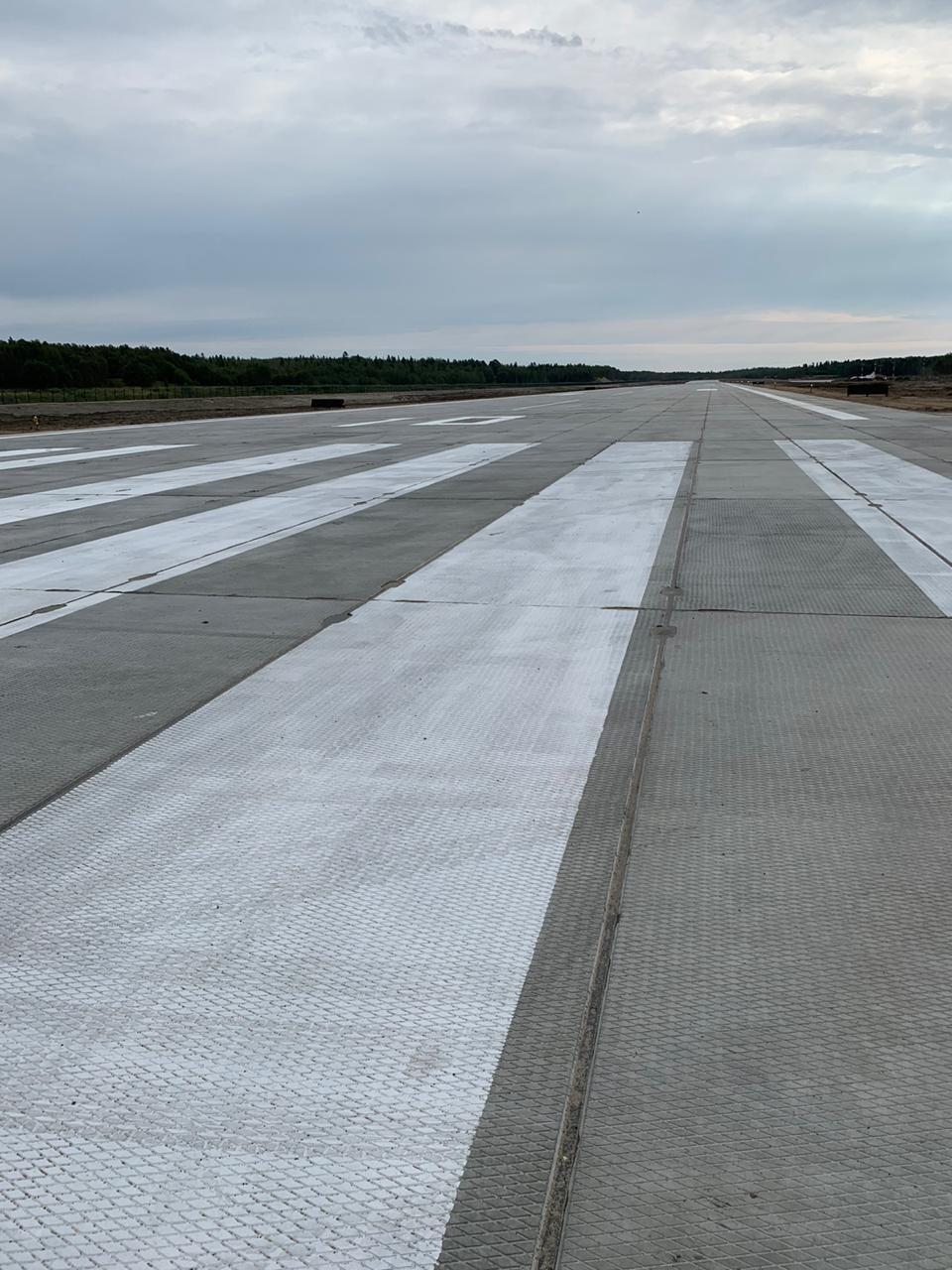 В рамках I и II этапов реконструкции в 2019 году выполнен комплекс работ, предусматривающих устройство искусственных покрытий из сборных железобетонных аэродромных плит ПАГ-14 искусственной взлетно-посадочной полосы длиной 961 метров, перрона на 4 места стоянки воздушных судов и рулежной дорожки, подземных объектов энергетического назначения, дренажной системы, сбросного коллектора, очистных сооружений поверхностного стока.